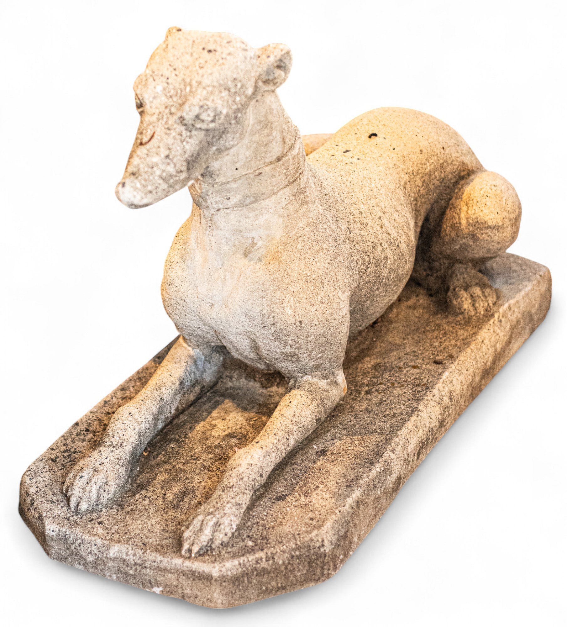 Enhance your outdoor space with these Antique Concrete Dog Whippet Statues, expertly crafted to bring timeless elegance and character to your garden or patio. Made from durable concrete, they withstand the elements while adding a classic touch inspired by traditional Whippet sculptures. Perfect for collectors or those seeking a refined decorative accent, these statues combine artistry with outdoor resilience.