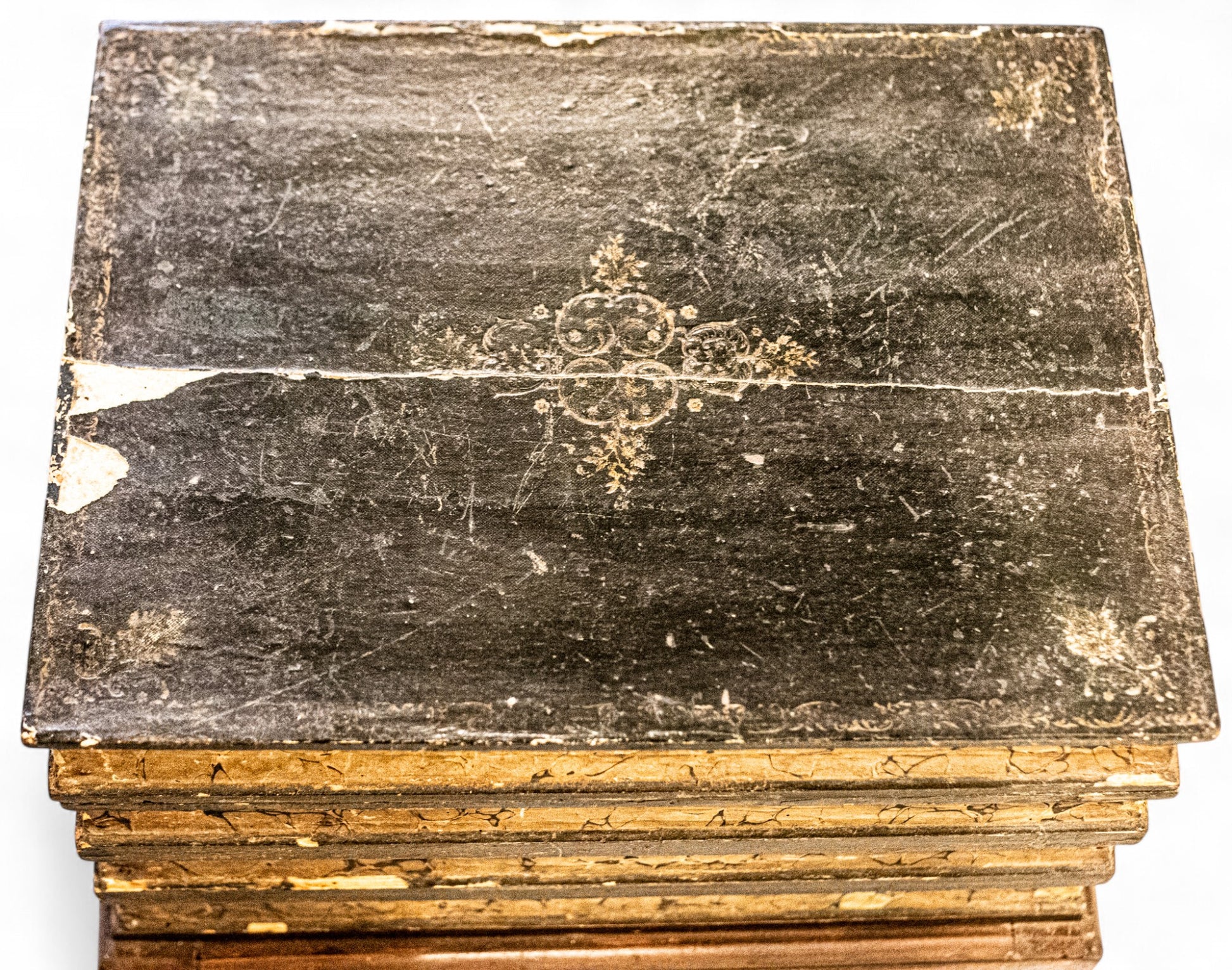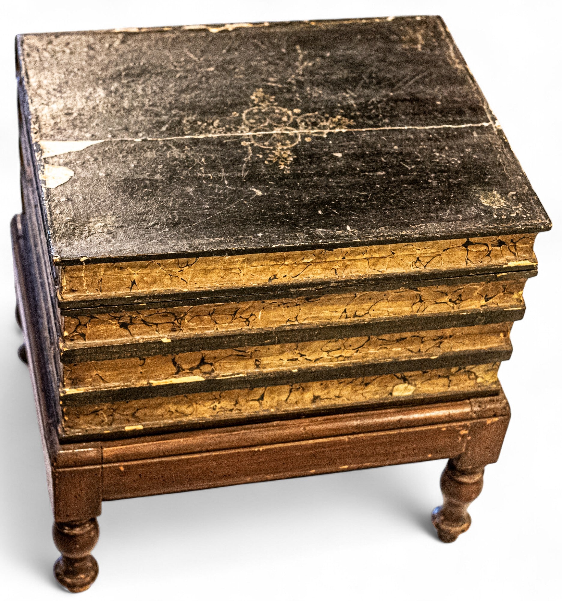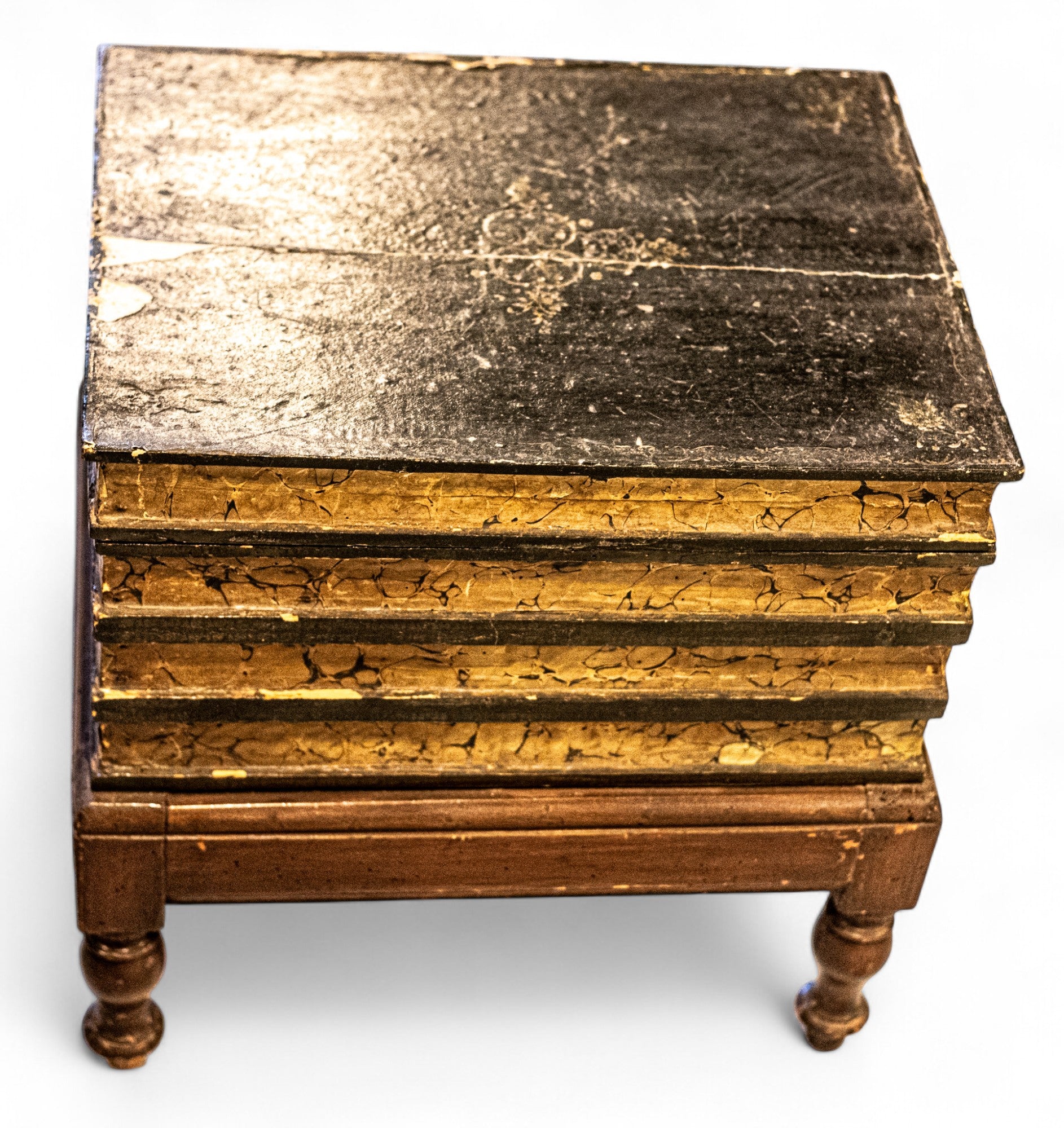 This exquisite antique Italian end table (Approx 20x24x24 tall), crafted to resemble a stack of books, combines artistic design with functional elegance. Its detailed craftsmanship reflects traditional Italian woodworking techniques, making it a distinctive piece that adds both character and sophistication to any living space. Ideal for collectors and connoisseurs, this table serves as a conversation starter while providing a practical surface for your essentials.