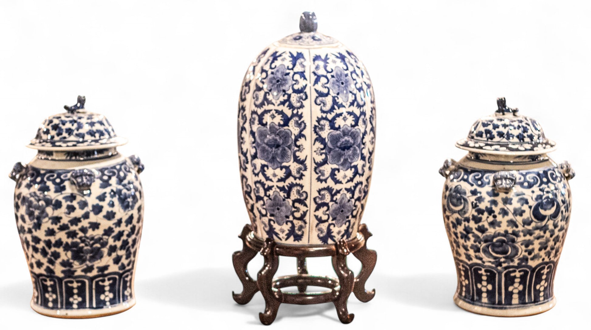 This tall blue and white Asian vase, paired with a finely crafted wooden base, exemplifies traditional Japanese artistry. Its elegant form and intricate patterns make it a distinguished decorative piece, perfect for showcasing in refined interiors. The wooden stand not only enhances its visual appeal but also provides stable support, highlighting the vase’s cultural and aesthetic significance. Ideal for collectors and connoisseurs seeking authentic craftsmanship.