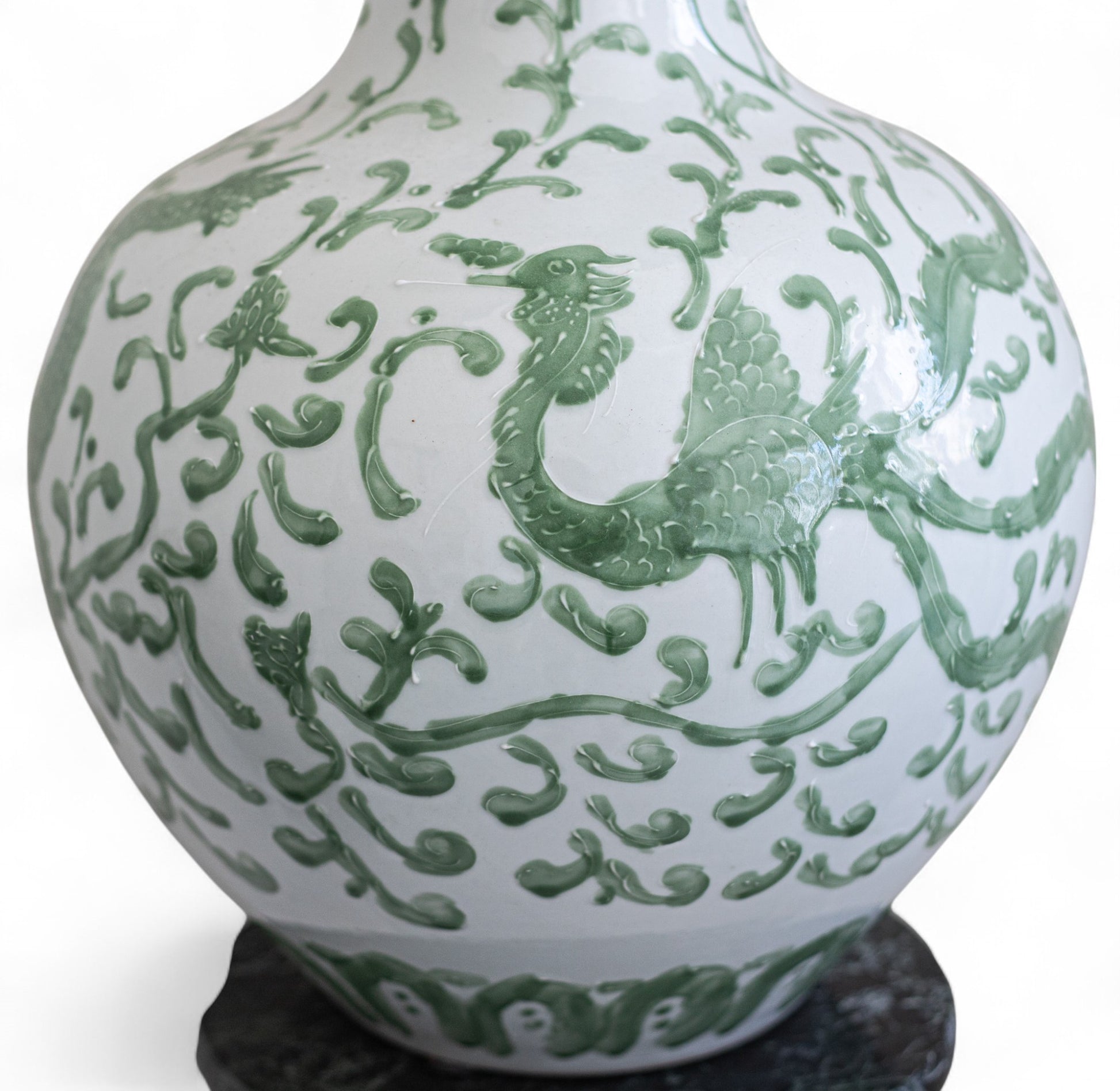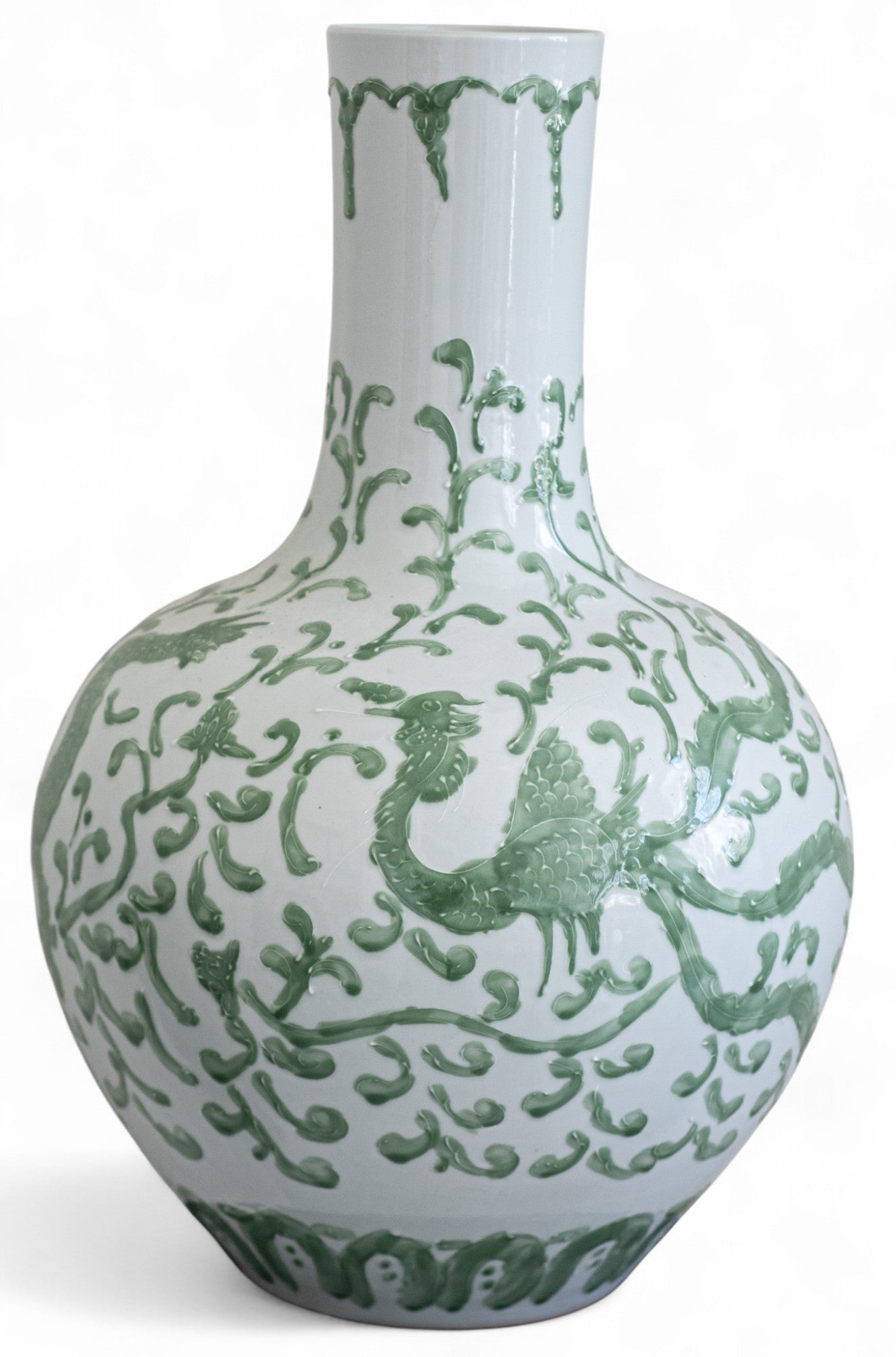 Green and White Asian Urn